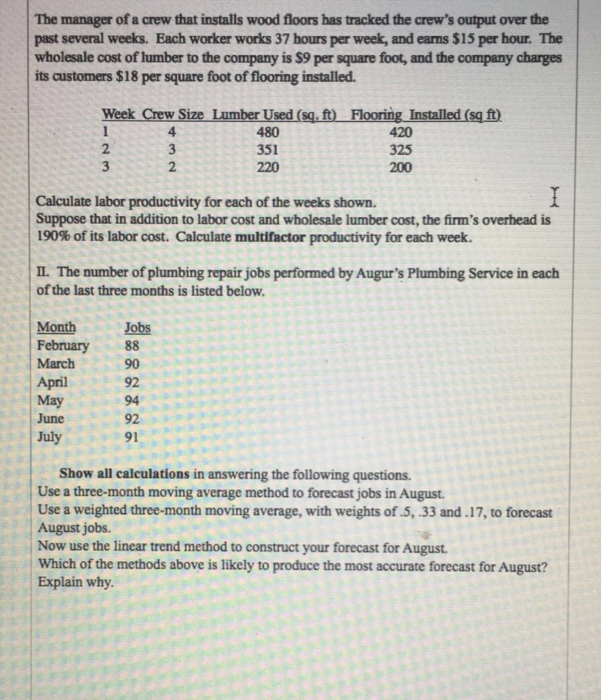 Solved The Manager Of A Crew That Installs Wood Floors Ha